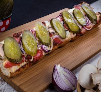 Serwowane przez nas zapiekanki są przygotowywane w obecności Klienta, na chrupiących bagietkach pochodzących z lokalnej piekarni. Wszystkie dodatki są zawsze świeże oraz odpowiednio wyselekcjonowane. Jednym z naszych podstawowych składników jest prawdziwy ser. Elementami, które nas wyróżniają spośród konkurencji – jest wybór aż jedenastu starannie dobranych sosów oraz pyszny naturalny ogór kiszony wieńczący całą zapiekankę.