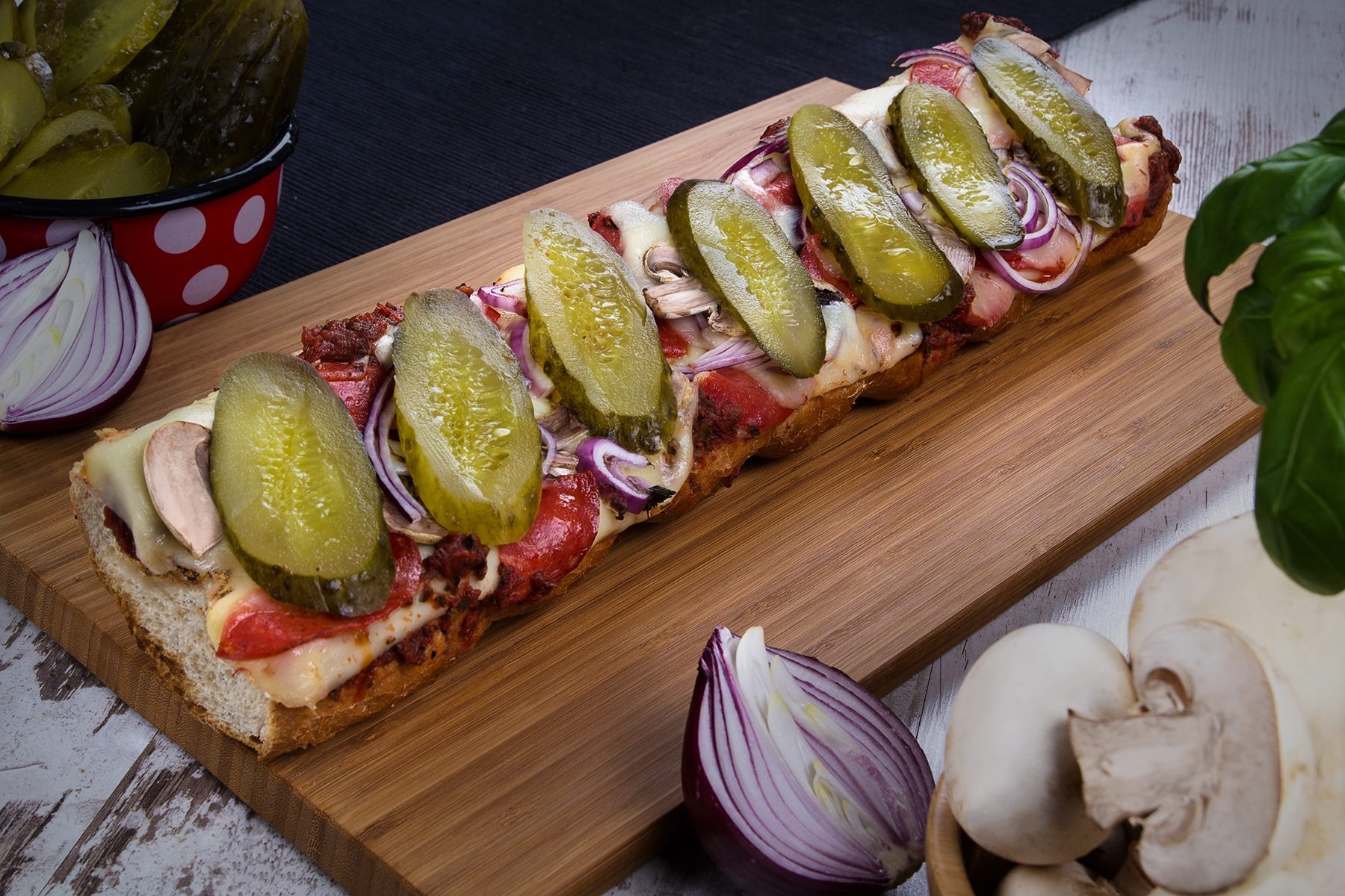 Serwowane przez nas zapiekanki są przygotowywane w obecności Klienta, na chrupiących bagietkach pochodzących z lokalnej piekarni. Wszystkie dodatki są zawsze świeże oraz odpowiednio wyselekcjonowane. Jednym z naszych podstawowych składników jest prawdziwy ser. Elementami, które nas wyróżniają spośród konkurencji – jest wybór aż jedenastu starannie dobranych sosów oraz pyszny naturalny ogór kiszony wieńczący całą zapiekankę.